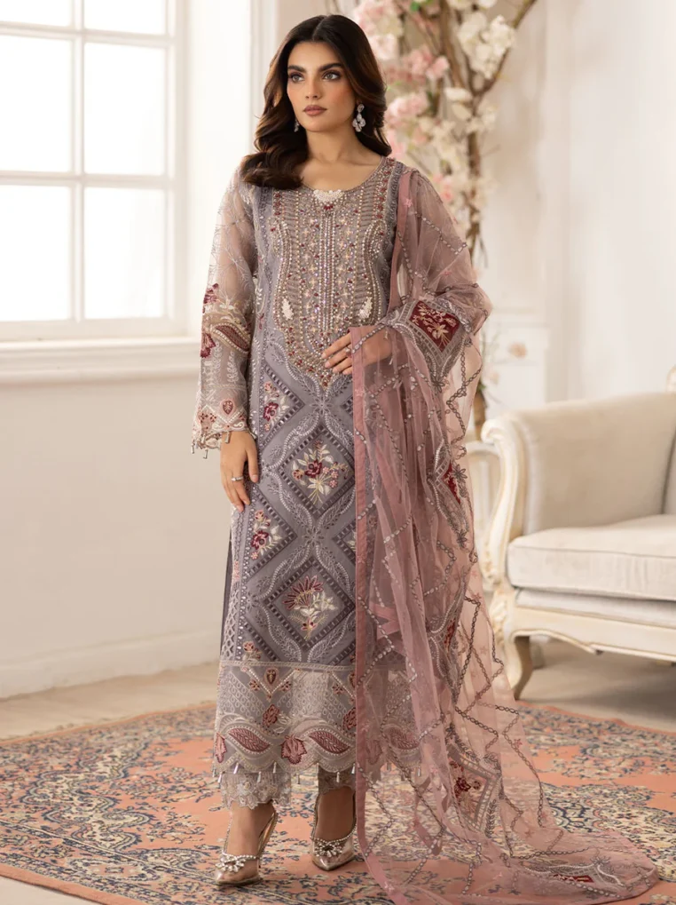 Shaista Supreme Premium Emb Peach D-804