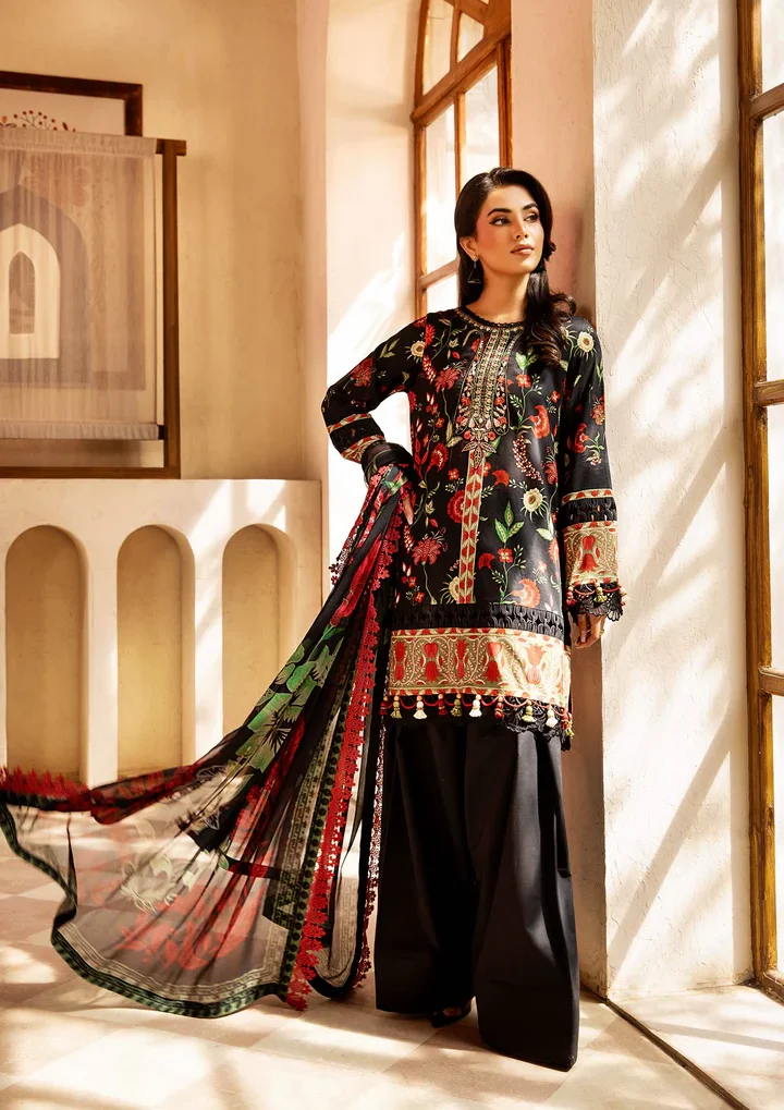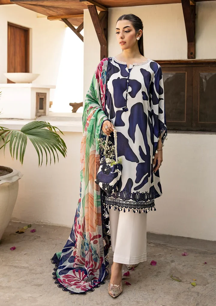 MARIA B m-basics 3 Pc Unstitched Embroidered Lawn Suit |MB-CUS25-906B