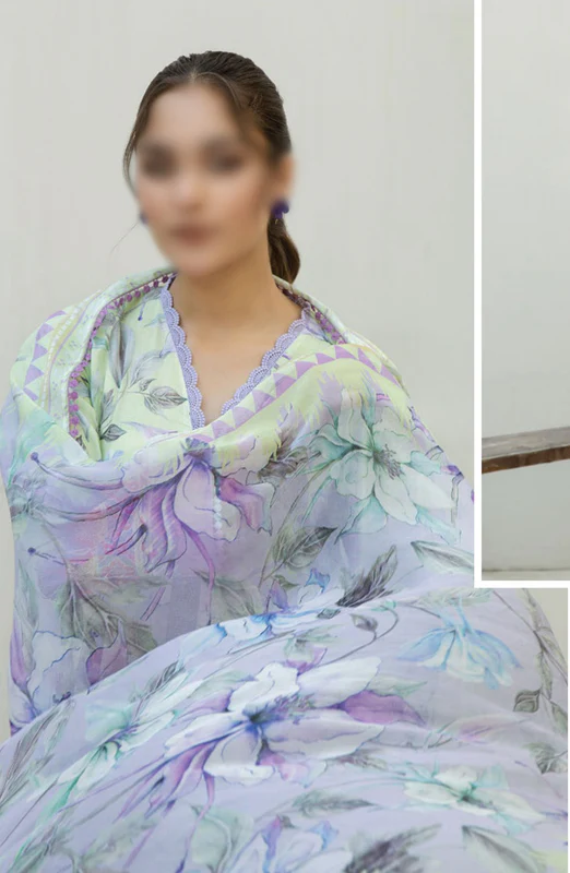 3 Piece Unstiched Embroidered Chikankari Lawn Suit with Chiffon Dupatta.