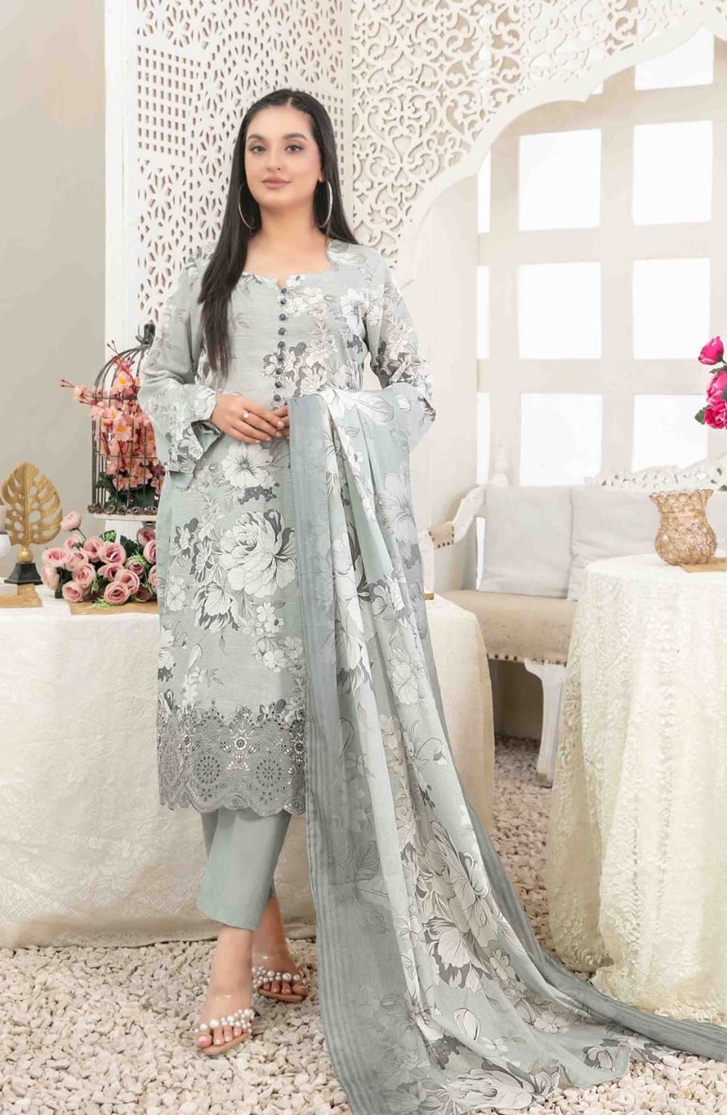Un-Stitched Embroidered Digital Printed Slub Lawn Shirt