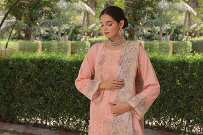Exquisitely crafted with Luxury Heavy Chiken-Kari Embroidered Bana Dora Lawn, featuring fine needlework and traditional textures that exude sophistication.
