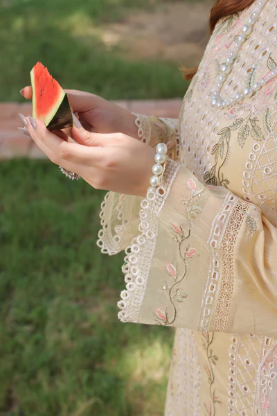 Ready-to-Wear Cutwork Embroidered Chiffon Digital Printed dupatta that elevates the outfit with its airy elegance and artistic flair.