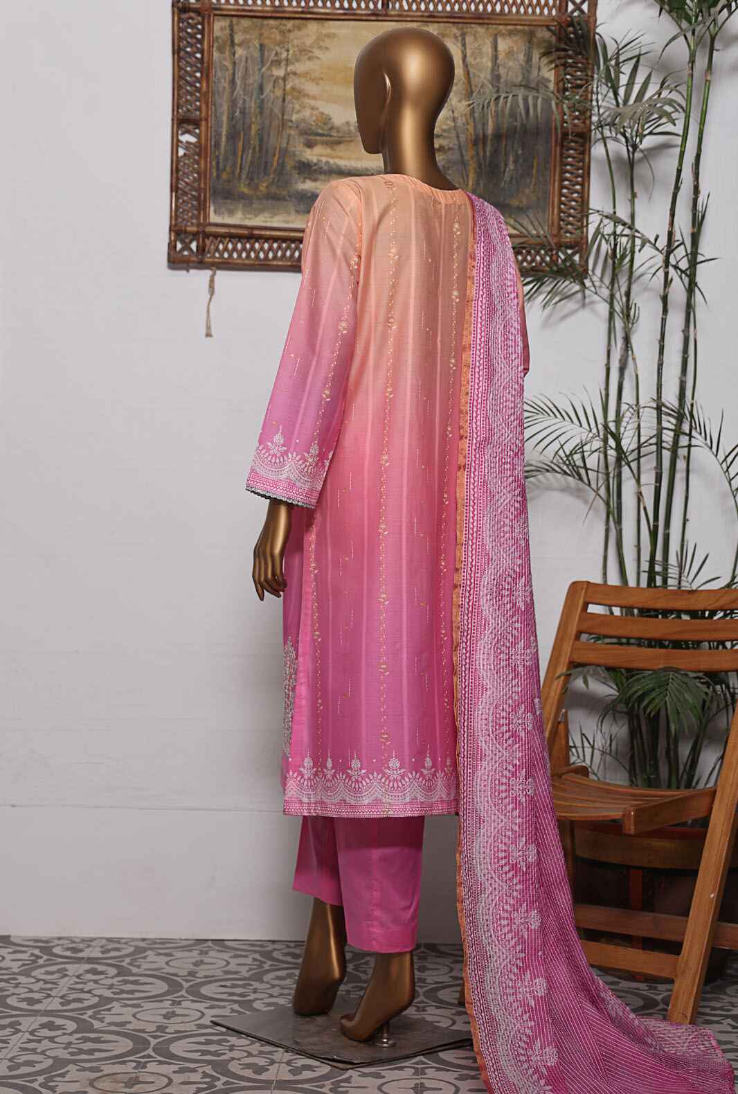 • Digital Printed Embroidered Lawn Shirt With Meenakari Embroidered Daman