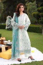 Gracefully detailed with delicate embroidery, this premium lawn suit offers a flawless summer look. Perfect for daytime events and evening gatherings alike.