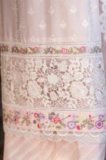 Long Shirt: Long Shirt with Multi-Thread Neckline & Lace Work, Chikankari Sleeves, and 3D Laser Organza Border Patches