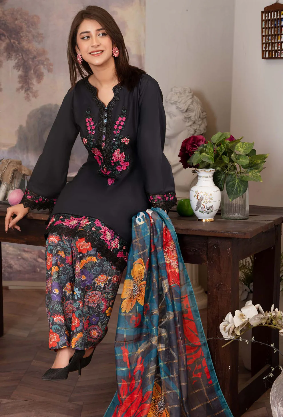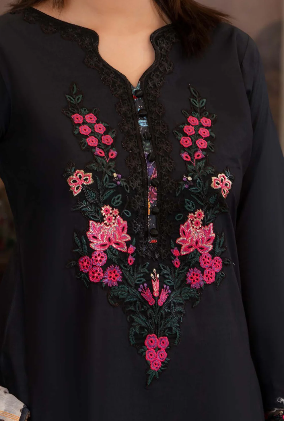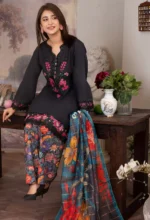 Soni Ashi Luxury Cotton set includes a long shirt, trousers, and diamond dupatta.