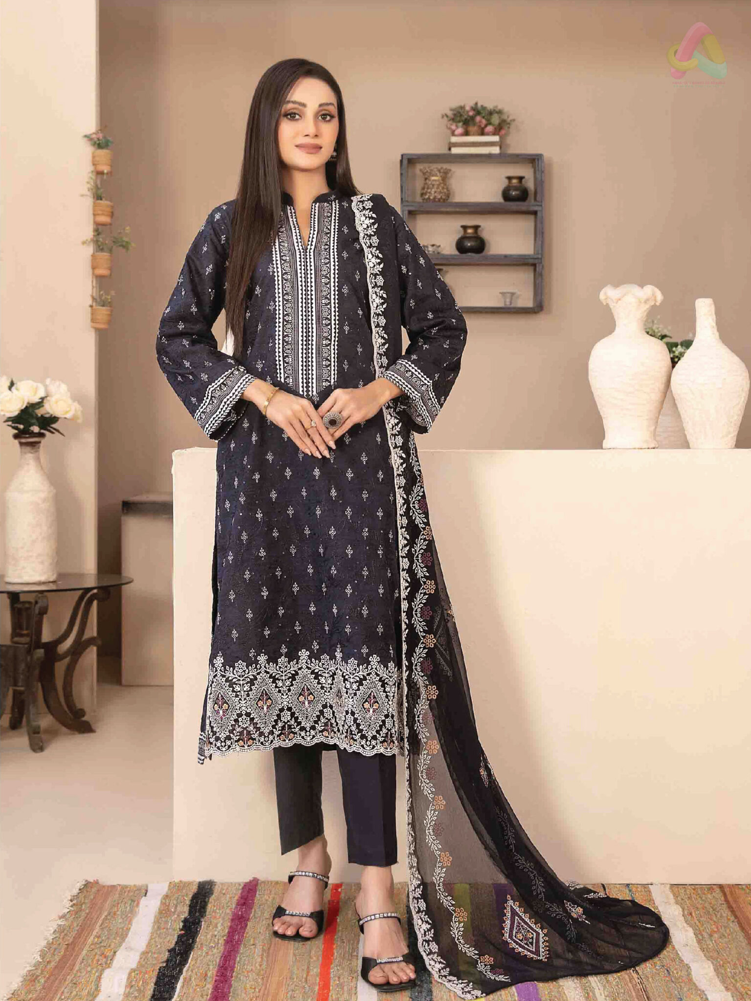 a stunning blend of tradition and trend. Part of the Tawakkal Lawn 2025 collection, this 3-piece unstitched suit offers elegance and comfort tailored for festive and everyday wear. Designed for women who appreciate refined embroidery and breathable fabric, this ensemble promises to be a timeless addition. The shirt features intricate jaal and daman embroidery over a digitally printed lawn base, showcasing delicate craftsmanship and vibrant artistry. Whether you’re preparing for Eid festivities or a summer gathering, this outfit ensures you feel effortlessly graceful. The embroidered & table-printed chiffon dupatta adds a lightweight, flowy texture with an artistic edge, while the plain cotton shalwar keeps the look balanced and practical.