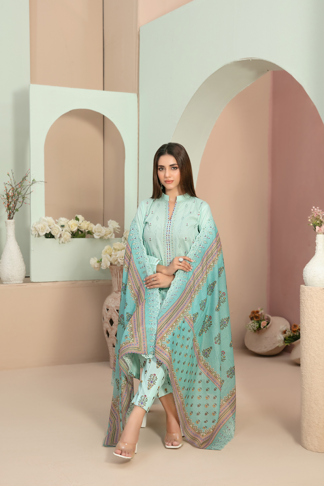 3 Piece Un-Stitched Collection By Tawakkal Fabrics, Attractive & Elegant Lawn Collection comes with: