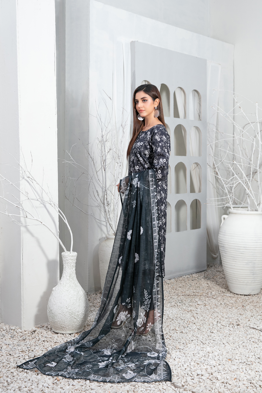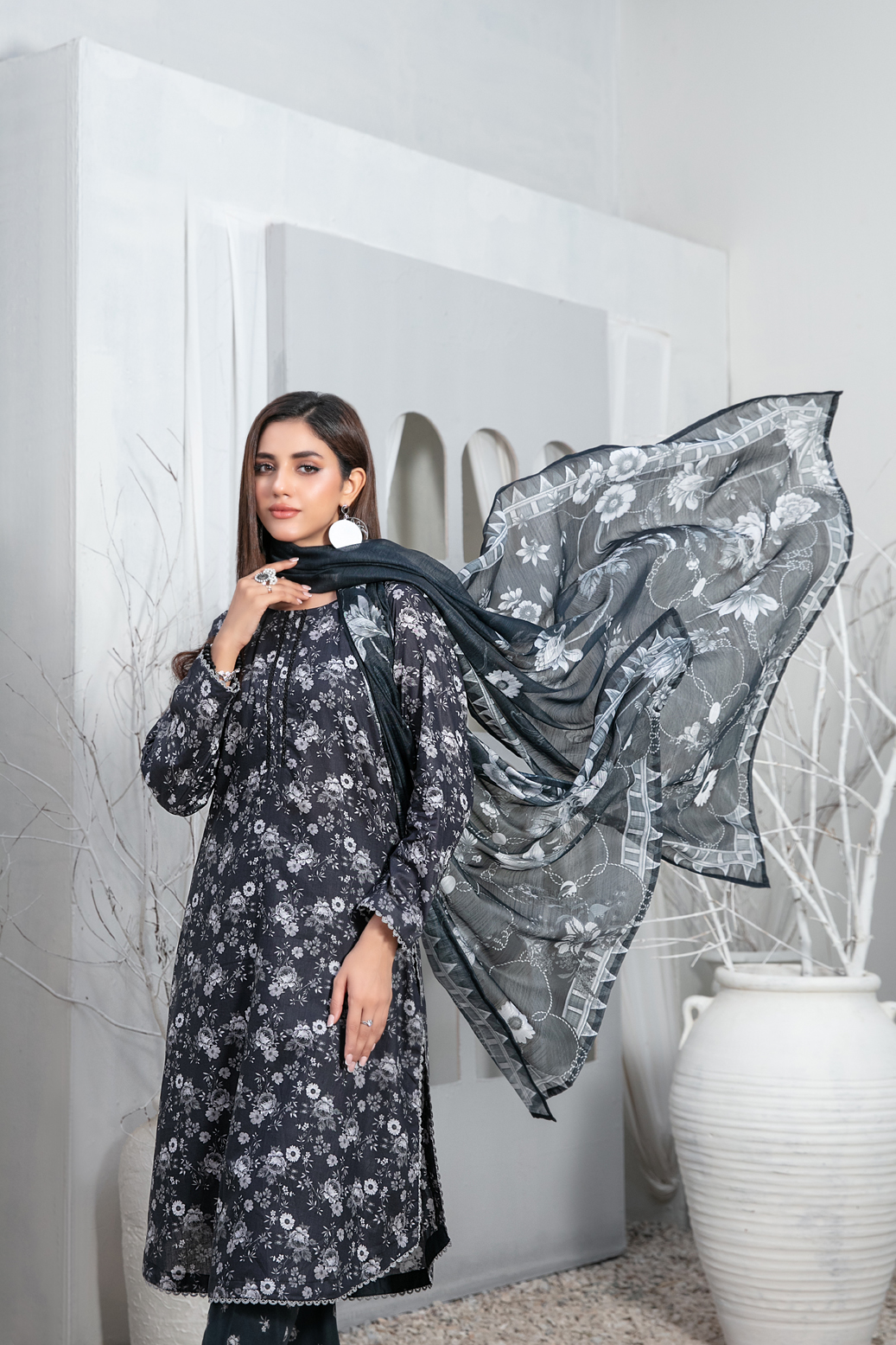 – Un-Stitched Digital Printed Black & White Lawn Shirt Designs