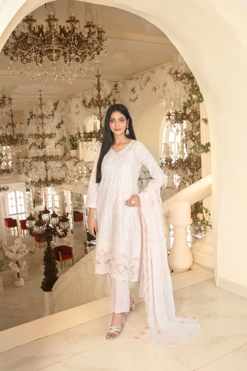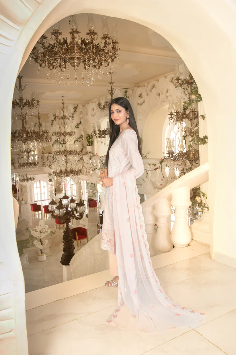 - Un-Stitched Jaal + Daman Embroidered Boti Broshia Lawn Shirt Designs with