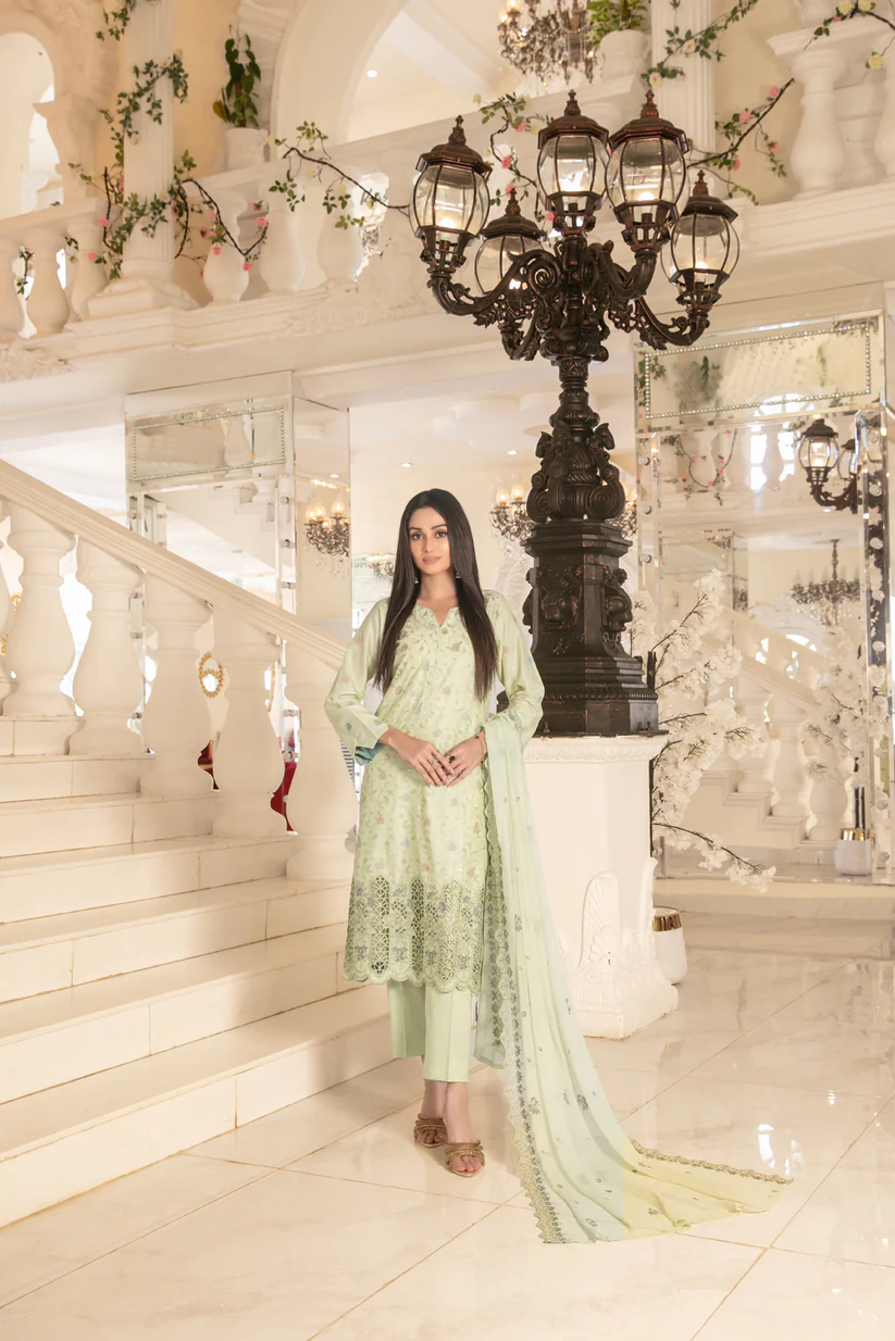 - Un-Stitched Jaal + Daman Embroidered Boti Broshia Lawn Shirt Designs with